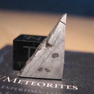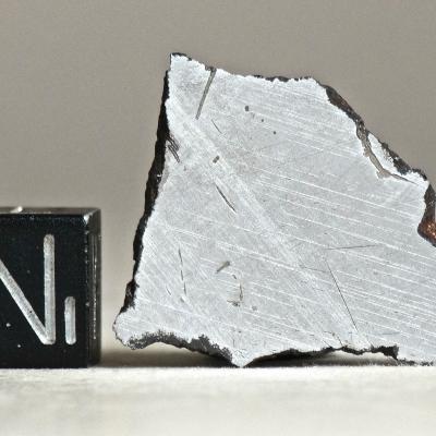 Trouvée au Brésil en 2011, d'un poids de 52,15kg, cette météorite est classée comme hexahédrite IIAB, (poids de l'échantillon : 2.07gr)